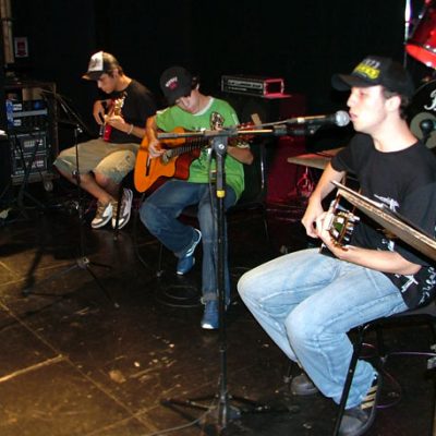 | Os alunos dos projetos Couro de Gato e Musiqualidade levantaram a platéia do Teatro Rosário Fusco na noite de 14 de dezembro. Eles deram um show de talento apresentando o que aprenderam nas aulas de guitarra, com o professor Edinho Gonçalves, e bateria, com o mestre Afonso Vieira. O repertório, recheado de sucessos do pop rock nacional, mostrou a cara da turma jovem que tomou conta da apresentação.